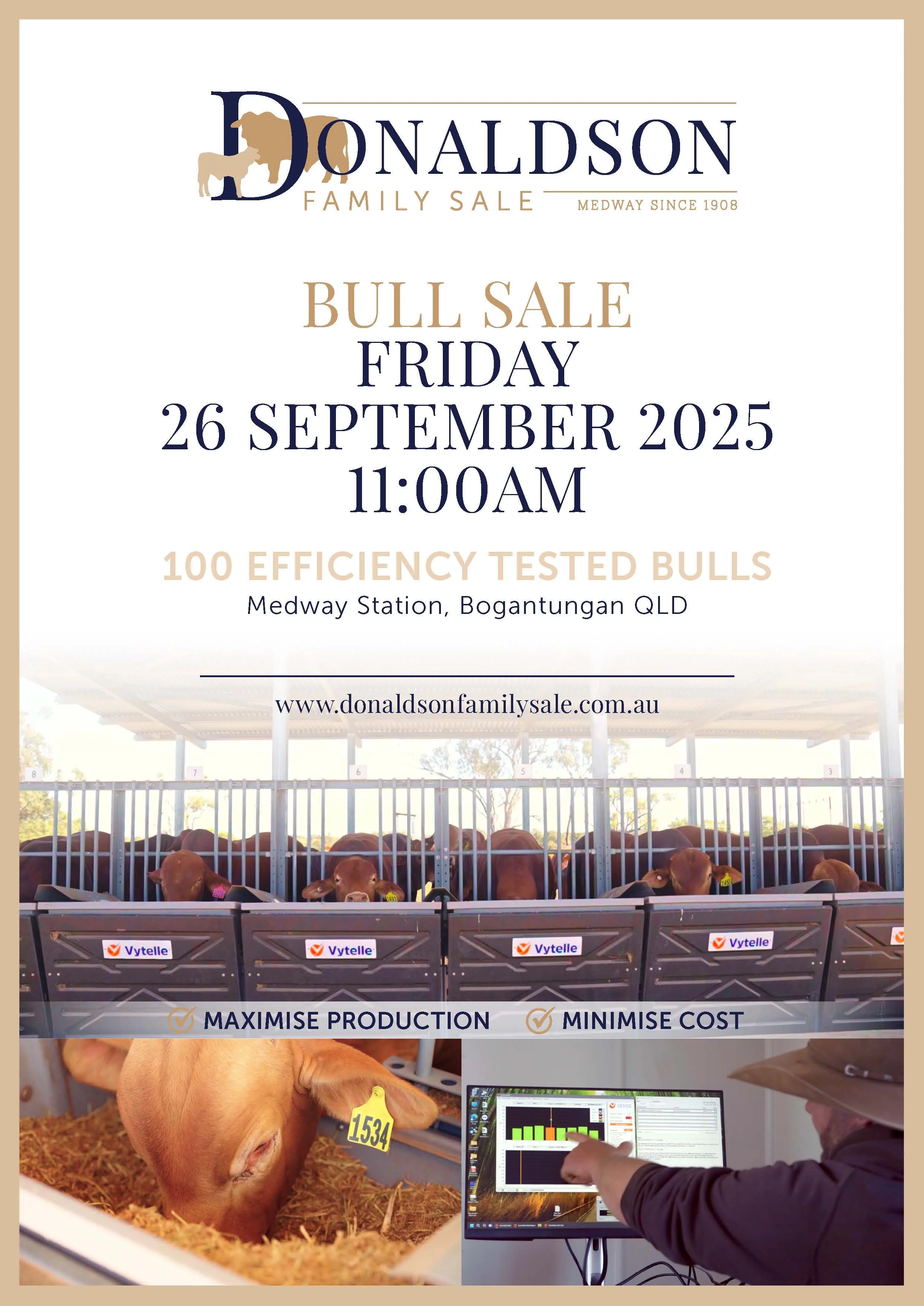 It is with great excitement and anticipation that the Donaldson family of Medway Droughtmasters invites you to the annual Donaldson Family Sale to be held at Medway Bogantungan on Friday the 26th September commencing at 11am.